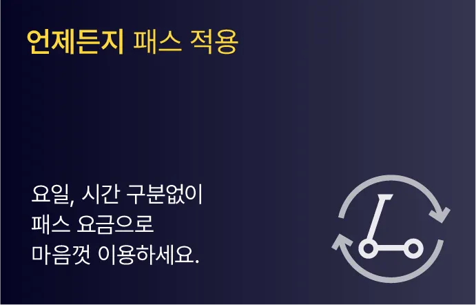 · 각 패스에서 제공하는 ‘총 패스적용시간’을 소진한 경우, 잠금해제 요금을 제외한 일반 요금제가 적용됩니다.