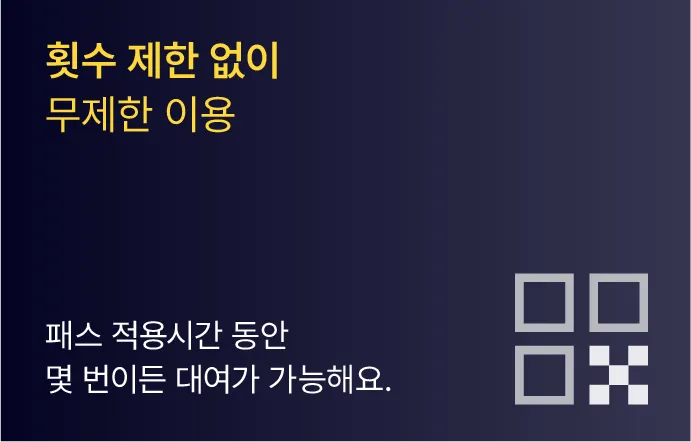 · 특정 패스 상품에는 대여 1회당 최대 적용시간이 다르게 적용될 수 있습니다. 패스 구매 시 안내사항을 참고하세요.
