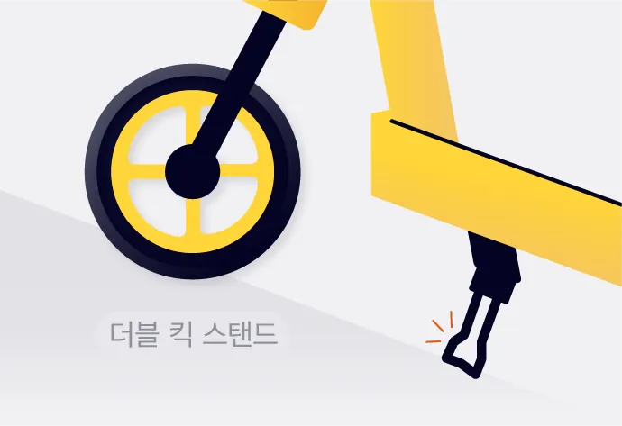 경사로에서도 넘어지지 않고 안전하게 주차할 수 있는 더블 킥 스탠드가 추가되었습니다. 브레이크와 브레이크 패드의 앞뒤 설치로 제동거리를 감소하여 주행 중 정지시에도 높은 안정성을 경험할 수 있습니다.